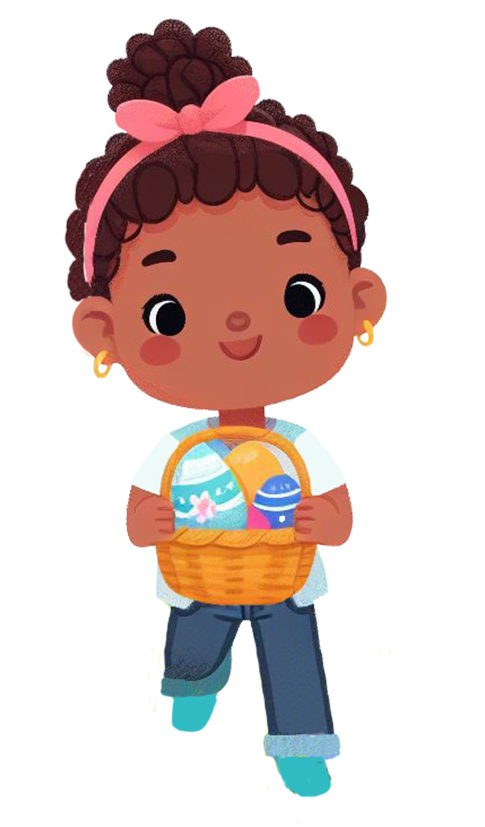 Easter egg hunt girl basket PNG |