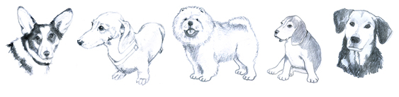 sketches of dogs, all kinds of dogs.